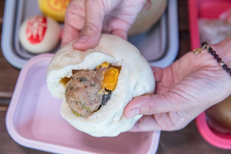 八寶肉包:鹹鴨蛋黃、新鮮青蔥、嚴選香菇、頂級豬胛心肉加上五花肉飽嘴又油香。