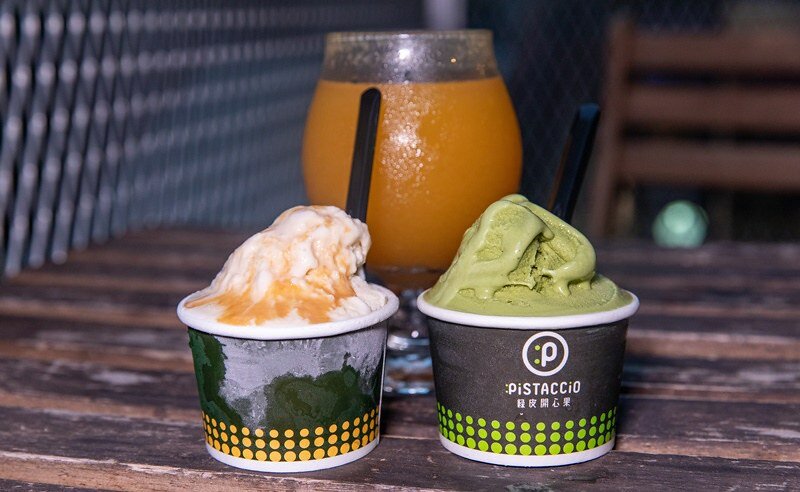 推薦:百年老磚牆的巷弄+貨櫃潮風全新台南風格,冰淇淋分為有酒精和無酒精兩種,主打全台第一家綠皮開心果。