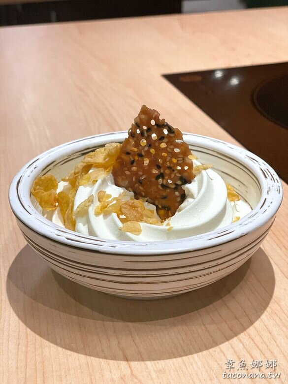 自行DIY組裝想要的冰品│有果醬可以淋上去,簡單一點加玉米脆片與芝麻餅增加口感。