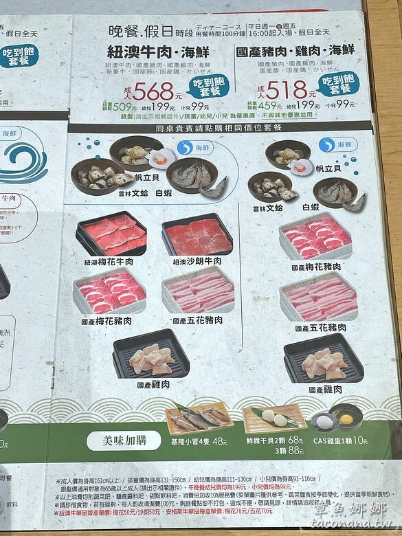 我們今天是吃晚餐$578元+10%,小章魚是幼兒價$199元(身高111-130都是幼兒價)。