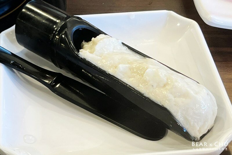 這是朋友聽店家推薦點的雪花牛,肉片的油脂分布就比較均勻,下面是附贈的魚漿燒,吃起來朋友給的評價也不錯。