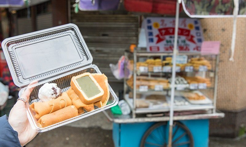 查了一下這家大概開了五、六十年,我一開始的印象就在如今的位置孝三路、忠二路口郵局前,中山一路算是做這些日式點心的店面,每天晚上十二點多開始純手工製作直到清晨出攤。每星期四到日早上8點出攤,一直到下午四點,但有時兩三點賣完就收了,夏天暑假因為天氣熱容易壞所以休息。