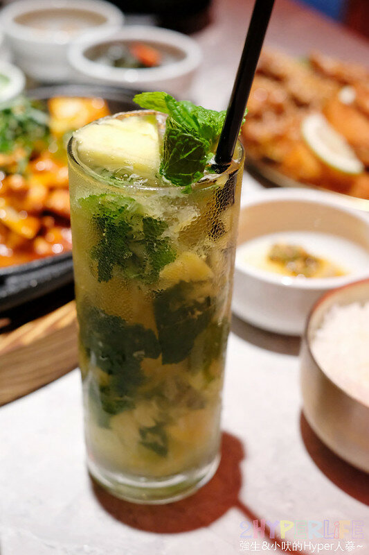 如果用餐當天不方便喝酒的話,可以選擇這杯把經典mojito改成無酒精飲料的類調酒啦!以鳳梨為基底帶著薄荷葉的香氣,好喝也很解膩,還有吃辣的其實來點甜的飲料很OK
