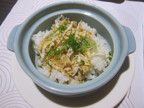 食事:芝麻醬雞肉絲飯,白飯很好吃,上方還有加上青蔥,增加風味。