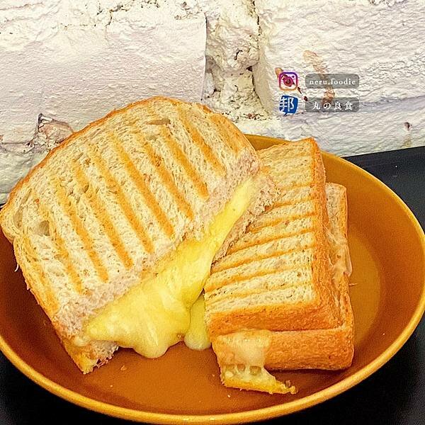 這次吃的熱壓三明治以全麥土司夾著多種起司牽絲只是基本!吃的好過癮(但有點單一)