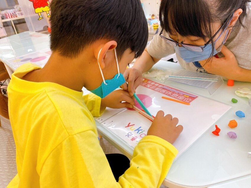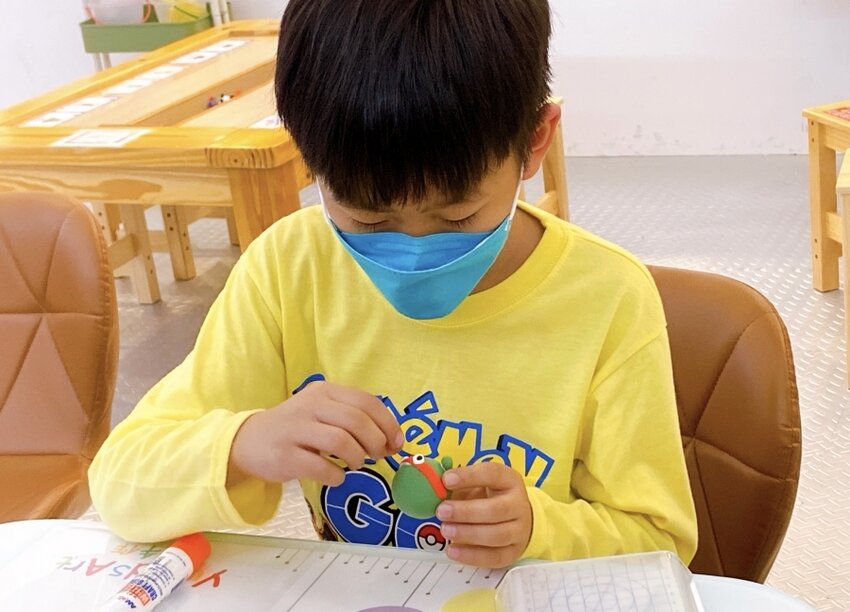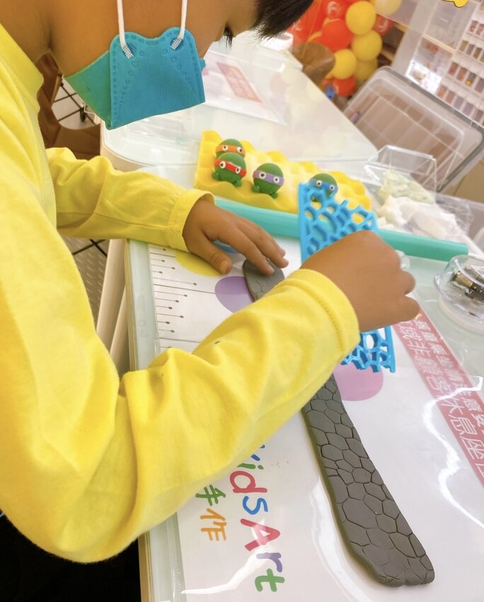 老師仔細的帶領屎蛋調色~忍者龜的眼罩顏色一下子就完成了,千變萬化的黏土,真的創意無限啊!