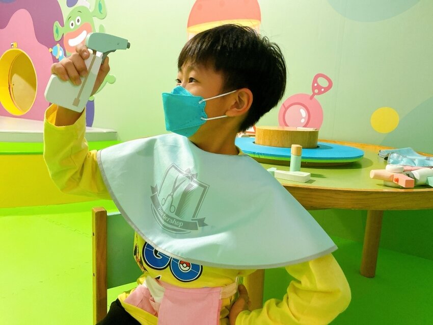 在這裡,孩子也能拿著媽媽化妝枱上的物品,左吹吹右噴噴,一秒變成自己專屬化妝間~