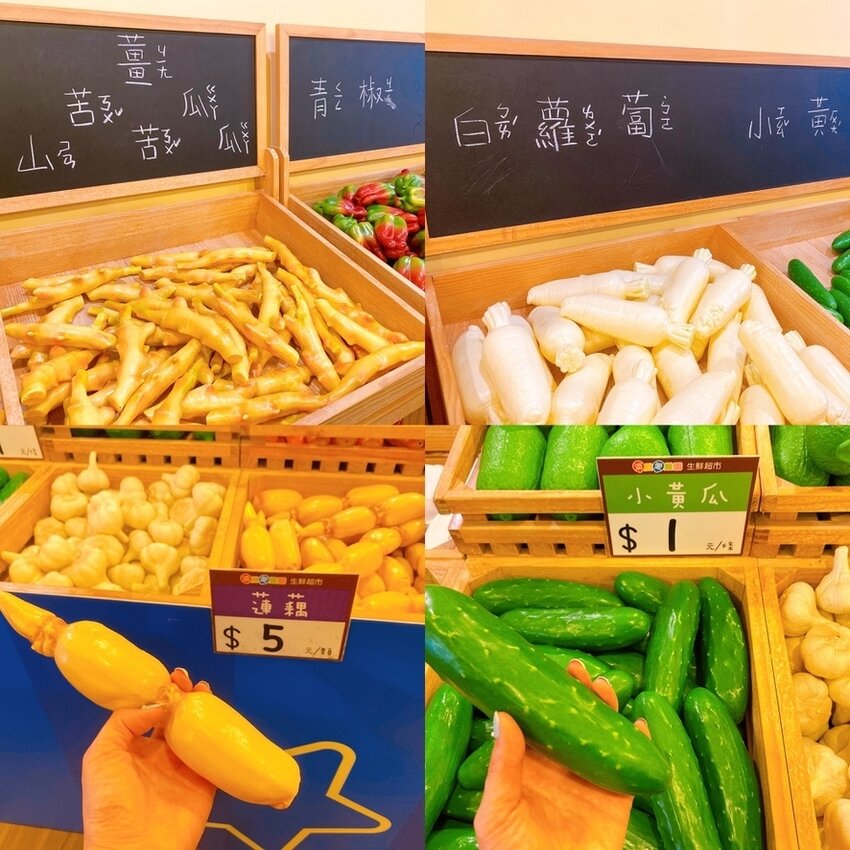 看著牆上的注音,什麼水果什麼蔬菜只要跟著唸,對照食材,學習更快速~