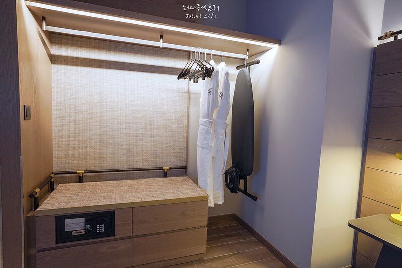 一旁的開放式衣櫃,提供浴袍以外,還有整燙衣服的器具