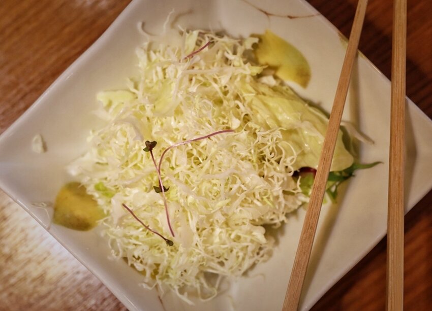 可無限續加的高麗菜絲,想吃多少就可以吃多少,桌上有和風醬以及胡麻沙拉醬可使用。