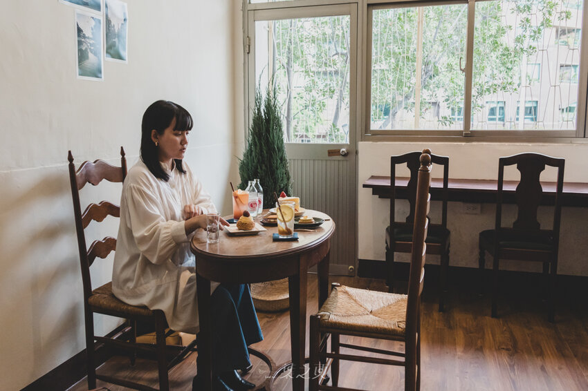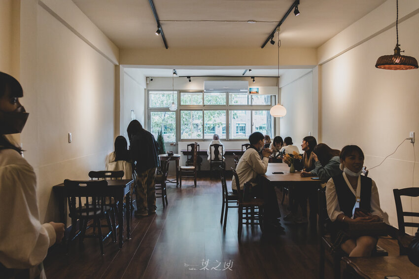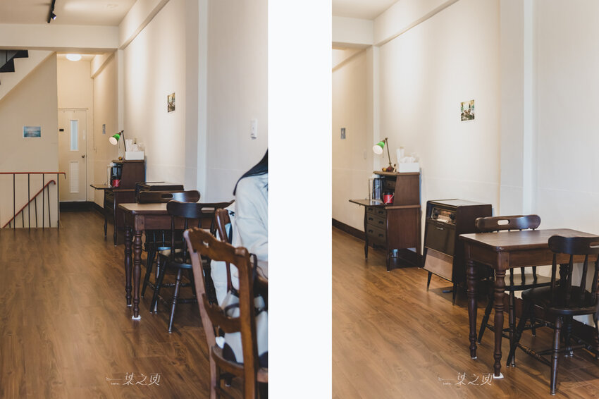 二樓的空間同樣狹長.桌位配置舒適,即便這個下午的客人坐得滿滿的,也不感到壓迫。透過窗戶灑進室內的光線,將整個空間襯得柔和;每張桌椅都有著自己獨特的樣貌,這也是老物件最讓人感到靈巧的原因;我特別喜歡還流淌著樂聲的老唱機,每個聲響聽起來更有時光的味道。