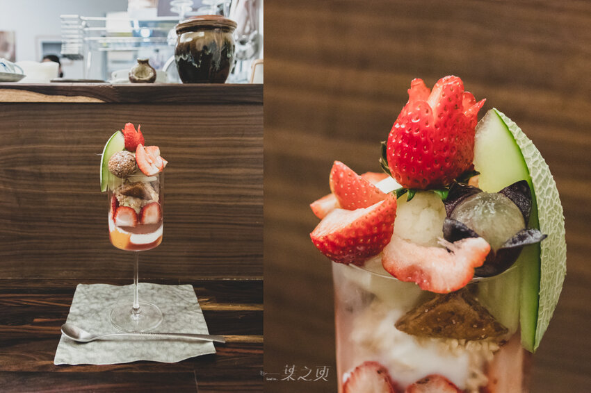 草莓和柑橘是我個人私心最喜歡的組合,我自己製作的草莓戚風蛋糕,也是以草莓和柑橘做為搭配。而パーラー映的草莓柑橘氣泡水,搭配起來相當淡雅,份量剛好可以讓每一口都充滿果肉及香氣。