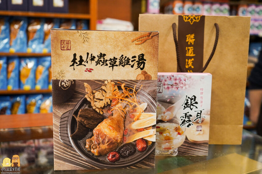 聯通漢芳也可以幫客戶需求做客製化規劃,可以搭配許多南北貨,或著是搭配它們現在剛研發的新品-杜仲蟲草雞湯