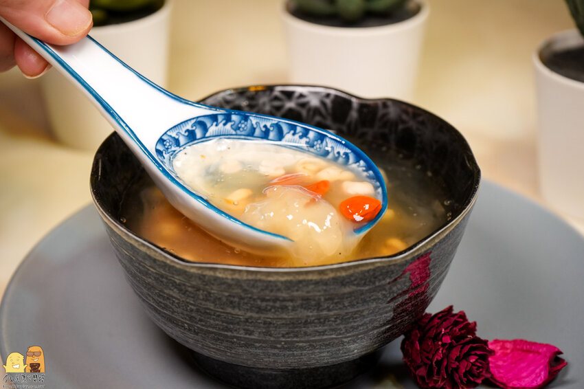 而且整碗甜湯完全不死甜,因為有加入枸杞跟紅棗,還能吃得出漢方食材的甜味