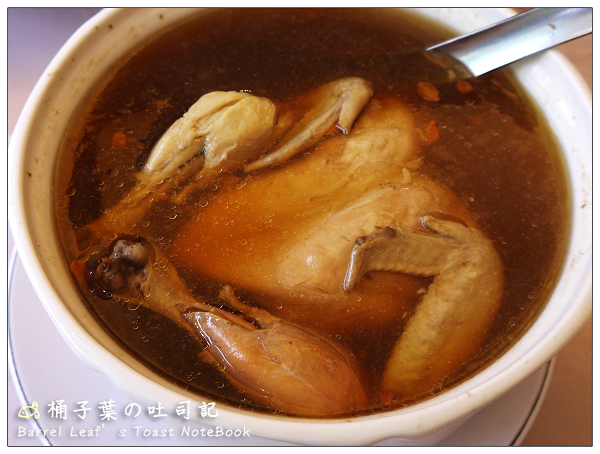 真的是一整隻完整的雞~湯內有加入紅棗與枸杞。可惜雞肉的口感有點乾柴了一些,