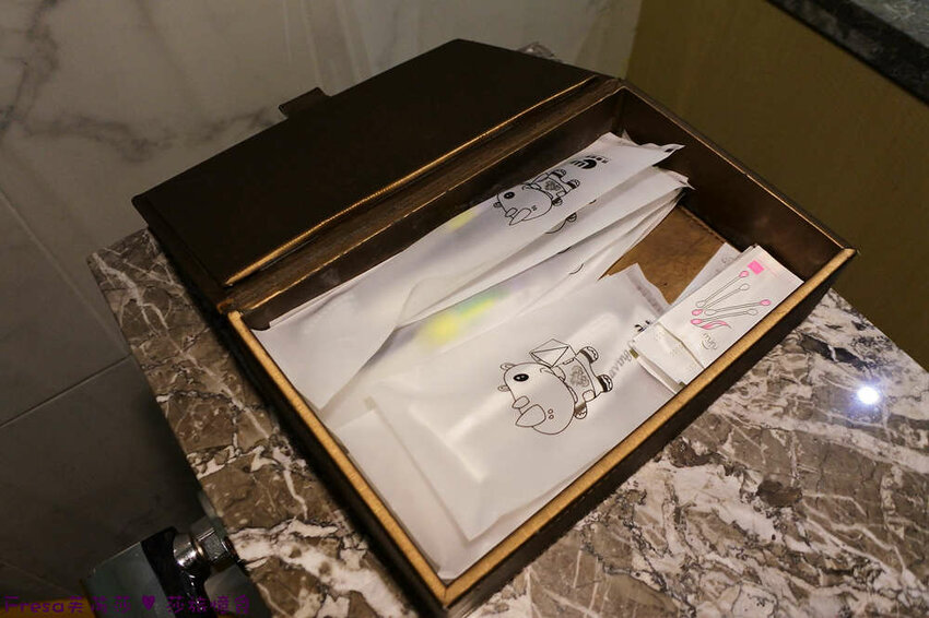 盥洗備品放在質感布套內,相當齊全.