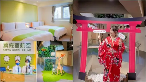 台中逢甲住宿推薦~ 距離 逢甲夜市 走路只要短短3分鐘的節能低碳旅店葉綠宿旅館 Green Hotel出新招,不僅住宿環境舒適、地理位置絕佳,現在還在各樓層新增了6大偽出國主題打卡點,交誼廳還免費提供有著濃濃異國風情的服飾讓旅客們開心換裝拍照,可以呀!