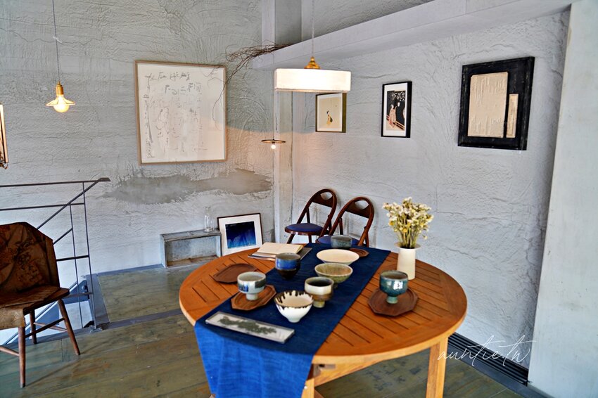 泊・月白 moonmist 環境是挑高的兩層樓設計,其中還販賣不少特色商品,像是喝茶用的茶碗就是跟在地的陶藝師合作,店內是選物店也可以品茶,不過要喝茶需要事先預約喔!