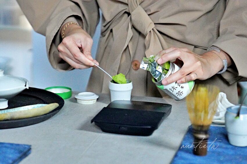 預約要先付訂金一人$300 ,訂位方式可以線上直接訂位,選擇想要的座位以及時段,樓上的和式榻榻米座位區有低消,這次選擇坐在吧台區可以直接看到老闆娘用竹筅刷抹茶,坐吧台椅子雖說腰酸,不過能夠近距離看老闆娘刷抹茶實在很棒。