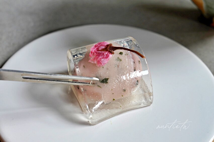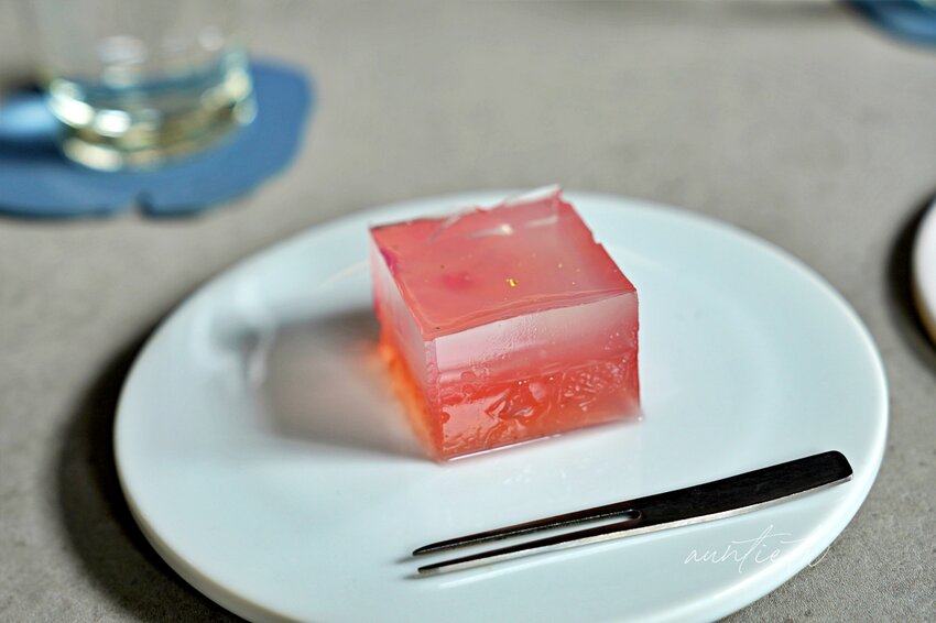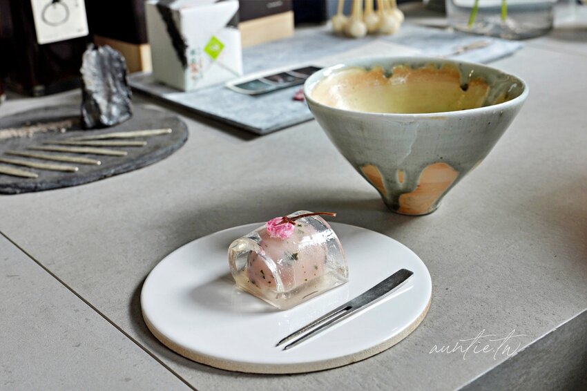 點心選擇了和菓 秋玫晚霞以及新春限定的櫻花流菓子,秋玫晚霞就是寒天做成的,吃起來就像是果凍QQ的口感,帶著點酸甜草莓香氣;櫻花流菓子比較像羊羹的感覺,不過中間的餡料是軟的,還加了漬櫻花,櫻花也沒在日本吃到的那麼鹹。