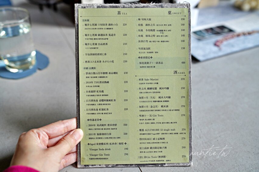 其實泊・月白 moonmist 店內除了茶飲之外還有酒類,不過這次都是選擇抹茶加上點心的套餐,稍微跟老闆娘聊了一下天,老闆娘之前在日本待過了很長一段時間,所以對於日本茶道以及相關的器具也有研究收藏很多。