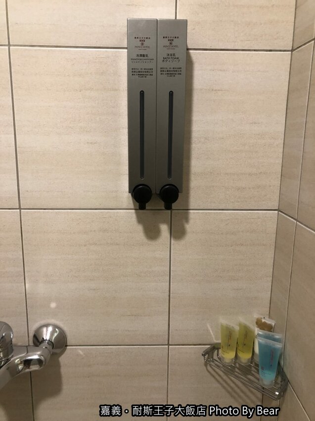 淋浴間裡就放有沐浴用品組