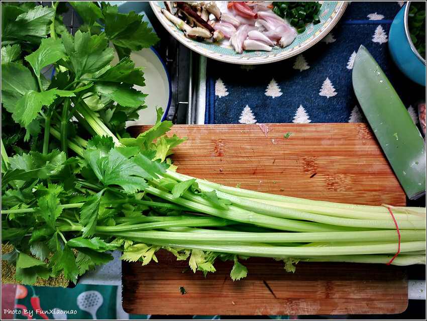 將韭菜、香菜、紅蔥頭、蒜頭、蝦米煸炒