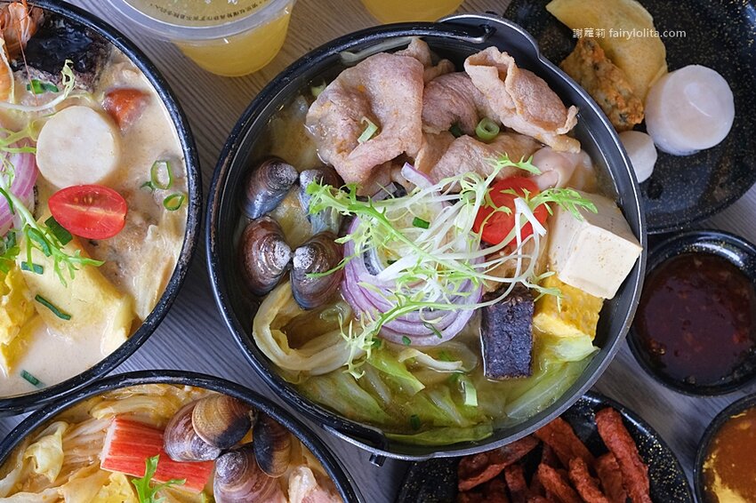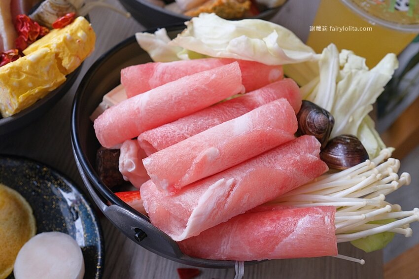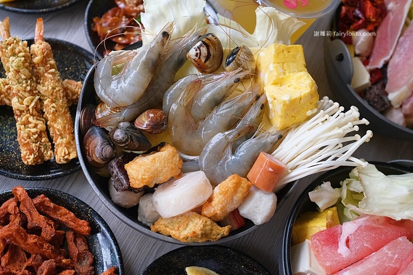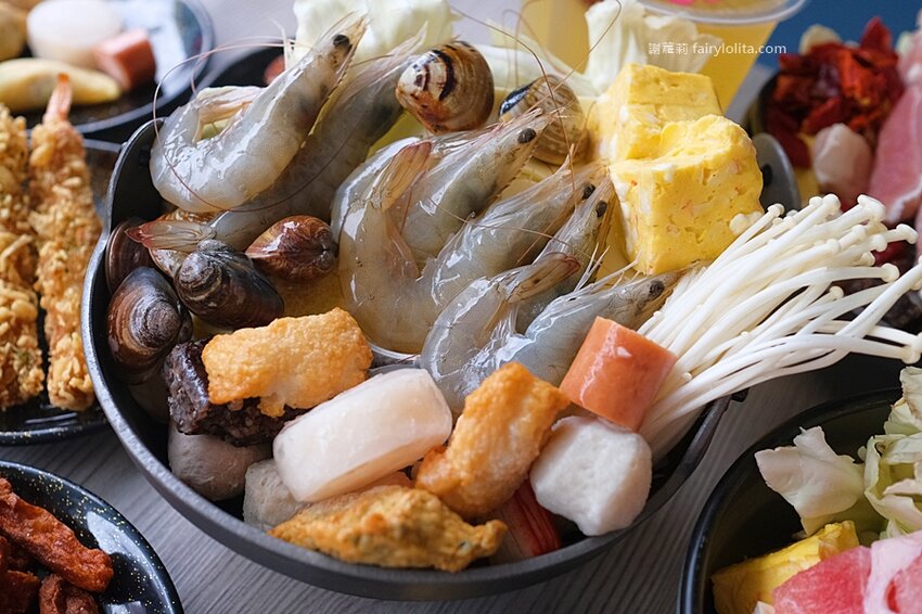 其它還有蛤蠣、金針菇、高麗菜、蟳味棒、蝦子、豆腐、米血、白蝦、貢丸、蛋餃、豬南片、魚餃,我光數這些食材手都快痠爆了!XD