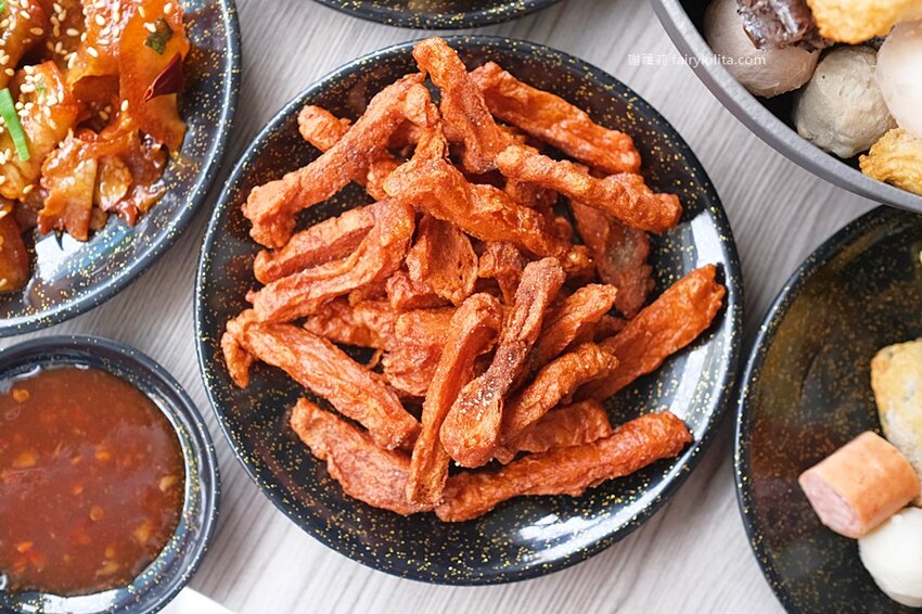 看起來很像甜不辣,但其實它是切成一條一條的黑輪,但又跟我們台北桃園的黑輪不一樣,吃起來比較有咬勁,酥勁也更強烈,簡單灑點胡椒鹽就很好吃,根本涮嘴到讓你停不下來。