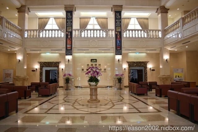 進入會議中心有種來到飯店大廳的感覺,室內設計跟外觀的歐式古堡建築相互輝映,華麗壯觀的設計,提供沙發座椅,可以稍後休憩的專區,首先第一站,先欣賞金車集團的歷史紀錄影片,了解集團旗下的產品。