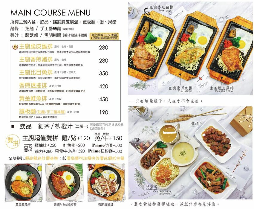 除了內用菜單外,還有外帶自取的優惠套餐,價格更實惠。