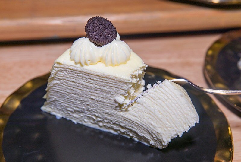 原味千層180元,雖然不像台南深藍那般薄且多的層次,但也著實札實,除了札實外還多了如同很細很細的碎冰口感相當特別,牛奶的風味頗香卻不至於過甜,明顯感覺得出來這家的千層蛋糕和其他家的很不一樣,飽嘴度大概是我最喜歡的一點。