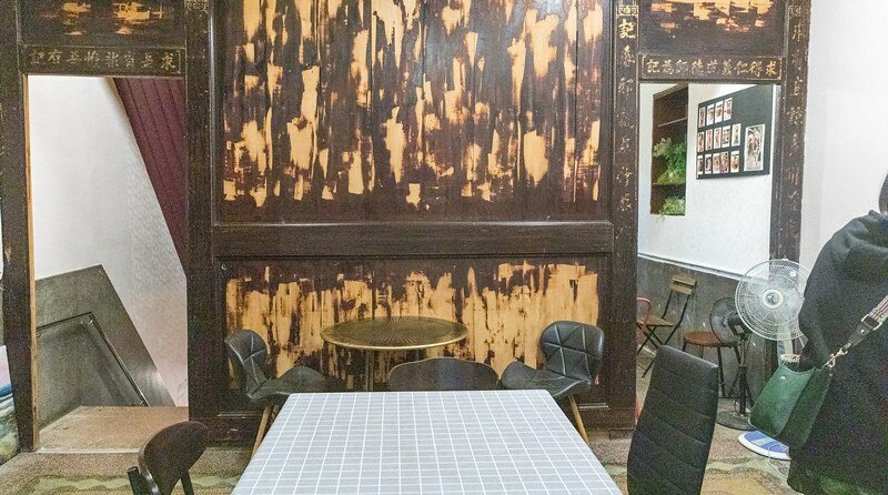 一回頭才發現上二樓便聞到的檜木香從何而來,老大哥說這些隔間板都是用檜木做的,也有七八十年的歷史,仔細看木牆、木柱上還有金色的對聯字樣。