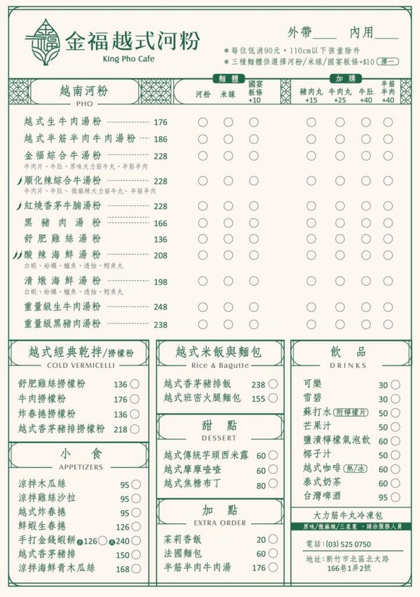金福越式河粉|菜單