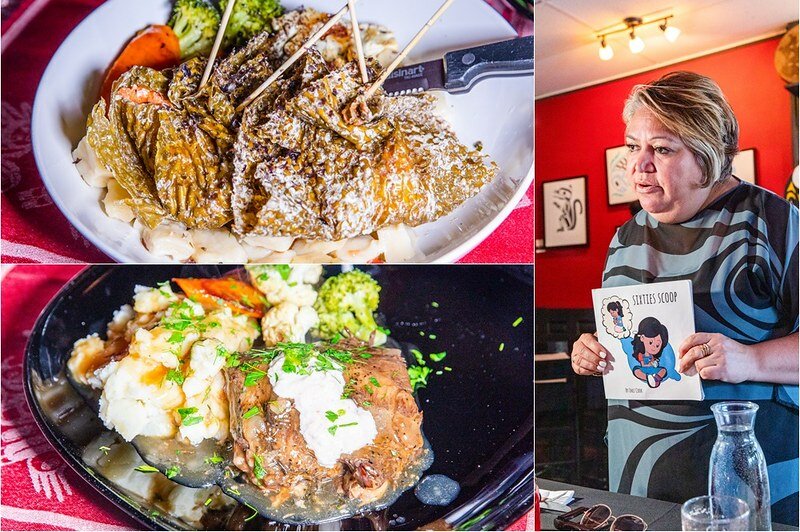 據查如今生活在塔斯林Teslin一帶的特林吉特人Tlingit,200年前住阿拉斯加海岸,是以在一些傳統原住民的料理中仍可嚐到「海豹肉」的醃漬料理,前面提過的Salmon n' Bannock Bistro便有這道開胃前菜(保育類,只能以自然死亡的海豹肉料理,而且只能招待不能販售)。大航海時代後,俄羅斯和美國踏上這片土地,一部份的Tlingit人,乘著獨木舟沿塔庫河而上,越過高地進入育空地區,一開始居住在塔庫河頭一帶以毛皮為業。1942年阿拉斯加公路連通了塔斯林,於是Tlingit人便居住在塔斯林湖Teslin Lake沿岸,淘金潮前後,林業、畜牧業也成了特林吉特人重要的經濟來源。