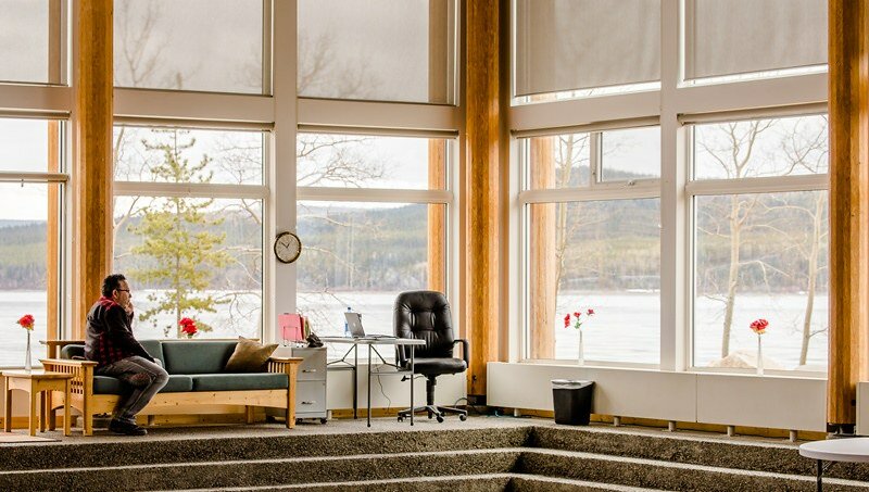 採光極好的落地玻璃窗透著Teslin Lake,及仍未完全融化的冰層映著遠處「孤羊山」 的雪山風景,就像欣賞著一幅似動非動的流畫般。