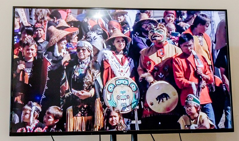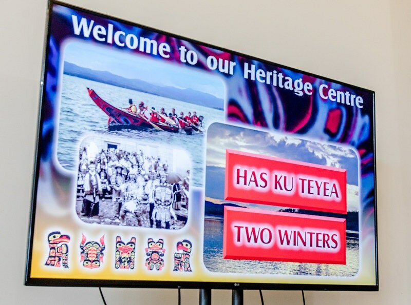 電視牆上訴說著每年6月21日舉辦的全國原住民慶典,以及每兩年一次在塔斯林特林吉特遺產中心 (Teslin Tlingit Heritage Centre)舉辦的Haa Kusteey原住民盛會,館長告訴我們,那天世界各地的特林吉特人都會回到這裡,穿上屬於自己的原住民服裝,年復一年。