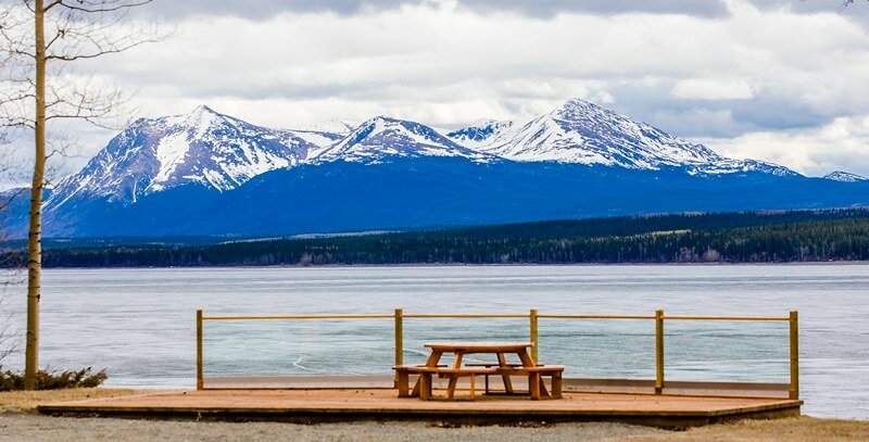 有機會開車自駕來到育空,不妨稍作休息,跟我們一樣在「Teslin Tlingit Heritage Centre」拜拜碼頭,順便好好欣賞Teslin Lake和「孤羊山」的美景。