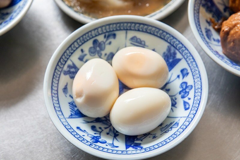 肉圓+米糕是萬全的起手式,想喝湯再來一碗四神湯,魯豆干、貢丸、黃金蛋、酒蛋一次全上齊。