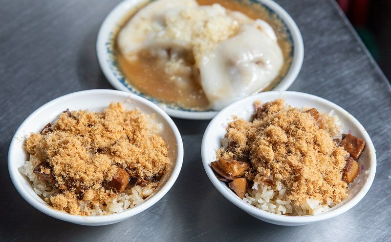 老實說,我一直沒有很愛台南灑魚鬆的米糕吃法,甚至有時常常想跟店家說,可以不要灑漁鬆嗎..因為我覺得這樣吃起來會影響肉燥的化口感,甚至吃起來有一點乾膩,雖然魚鬆是會增加一點香氣無誤....。另外,單吃這肉燥時我覺得很可以,鹹香油甜,米糕本身軟Q適宜,但對我來說同樣有一點偏乾,但咀嚼端的米糕香倒是相當札實。