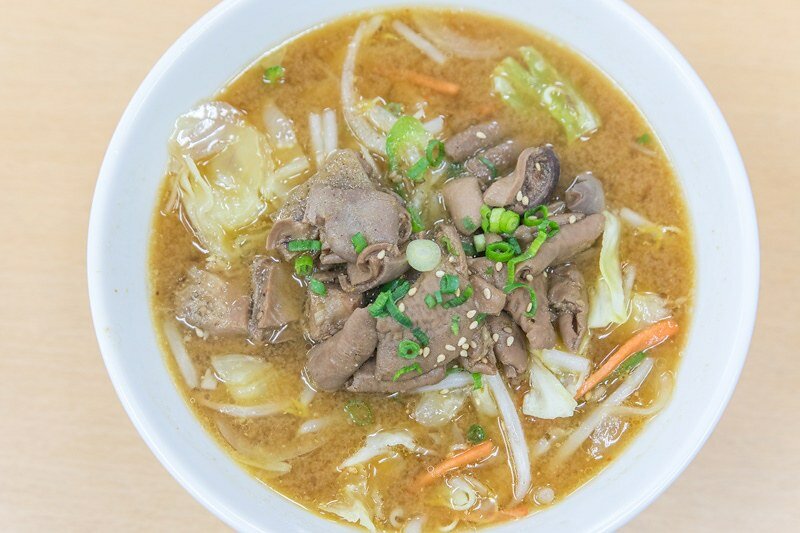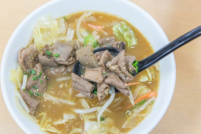 大量的蔬菜無疑是這一碗拉麵受女性顧客歡迎的理由,もつ煮也不像一般居酒屋當作下酒料理那般的鹹,除了腸子外還有少許的內臟,燉煮得都是軟爛易於咀嚼,真的非常好吃,尤其是混著野菜、拉麵跳著吃。