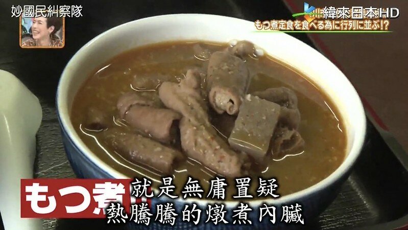 說到「もつ煮定食」,第一次聽到是在個人頗愛的日本美食綜藝節目「秘密のケンミンSHOW」(緯來翻成:妙國民糾察隊),該集介紹一家開在山裡,卻永遠大排長龍的定食餐廳「永井食堂」,tabelog居然高達3.72,招牌便是「もつ煮定食」。