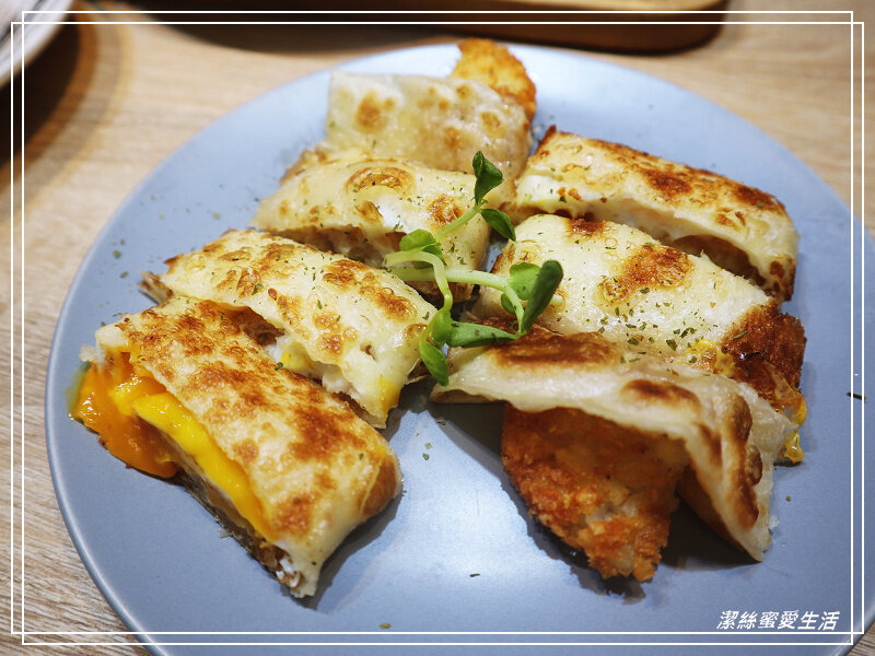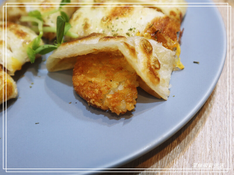 蛋餅皮本身微焦恰恰,脆酥口感是我們喜歡的,薯餅外酥內軟,加以起司及半熟蛋,又邪惡又美味呀!