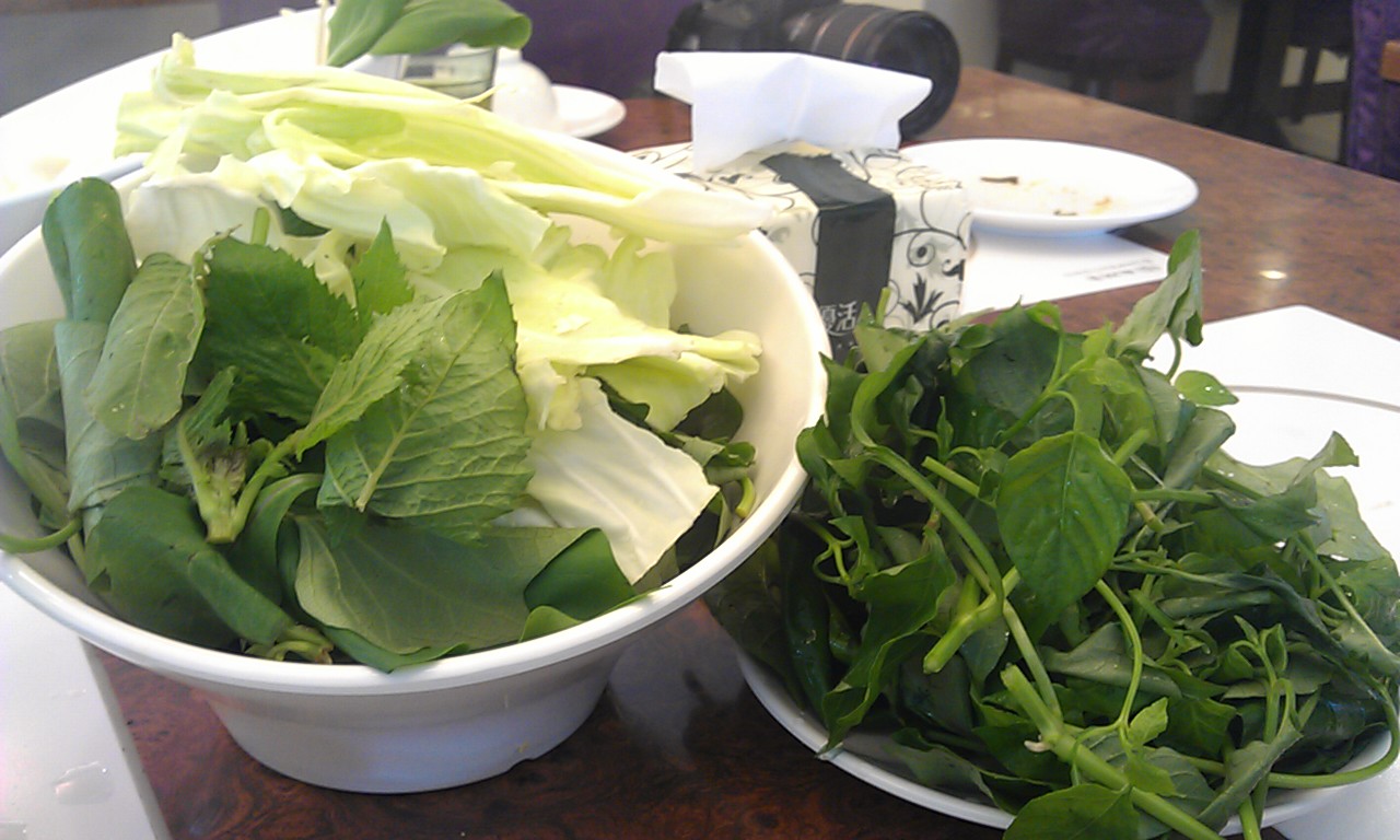 御棧提供的野菜都好新鮮!用清甜的湯頭滾熟後,不需沾醬就很好吃!我都忍不住吃了好多呢,呵~