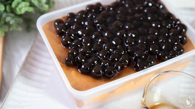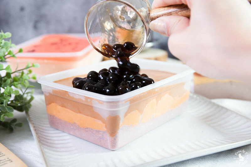 怎吃,就這樣不手軟的把珍珠倒上去….這款泰奶風味蛋一定要吃看看!