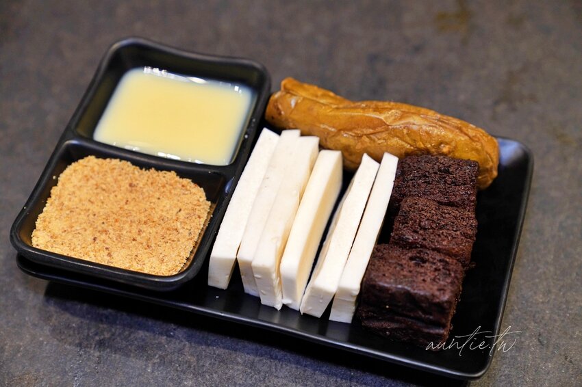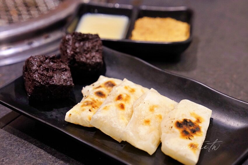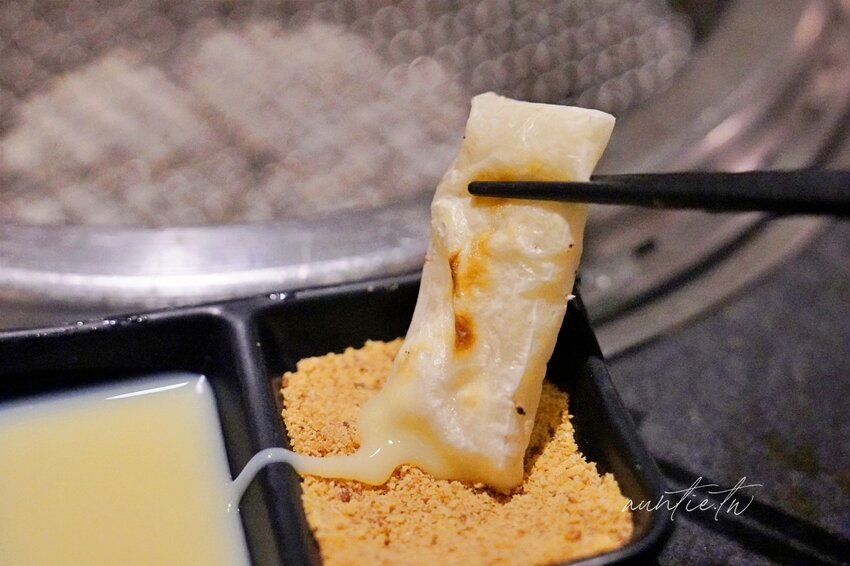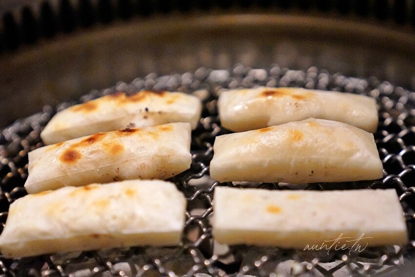 除了明治冰淇淋外,還有可以烤上桌的甜點,像是布朗尼、烤麻糬、冰心地瓜三種,個人最愛當然就烤麻糬,一定要烤的微焦然後漲的胖嘟嘟才行,再沾上煉乳及花生粉,這怎麼可能不好吃!