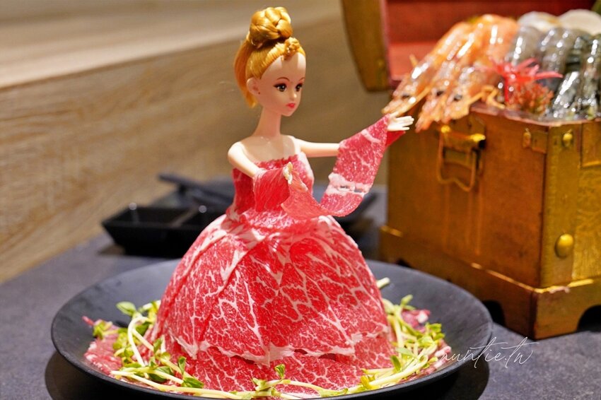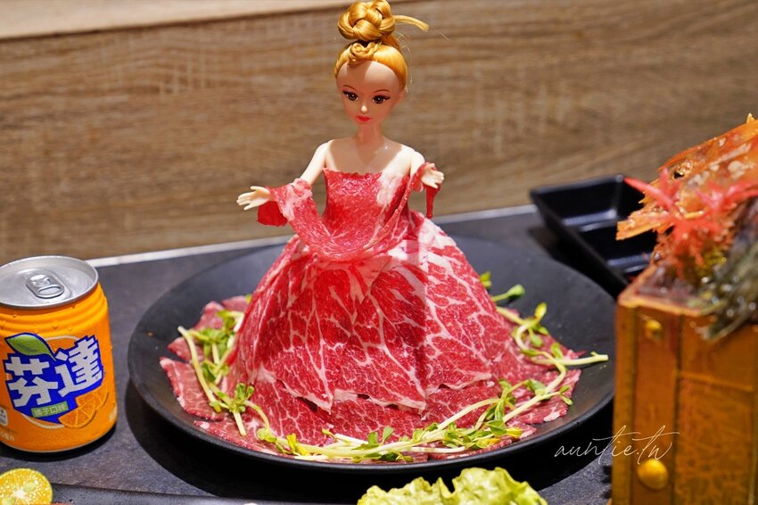 用Prime翼板牛盛裝打扮的芭比娃娃到底誰想的啦,真的很有梗耶!芭比上的翼板牛油花分布均勻,稍微烤一下包著鹽蔥醬有夠對味,不只造型厲害,肉的品質也很不錯耶!