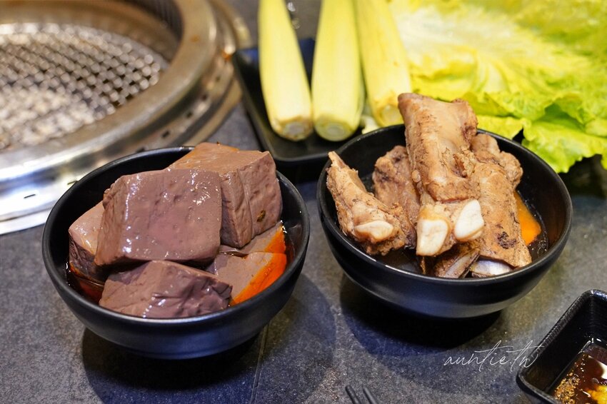 自助吧台上還有鴨血與藥燉排骨,真的不怕吃不飽,而是吃太飽,鴨血的口感不錯,軟Q入味又不會太重口味;藥燉排骨則是真材實料整隻肋排沒再跟你客氣的,光看就過癮啦!