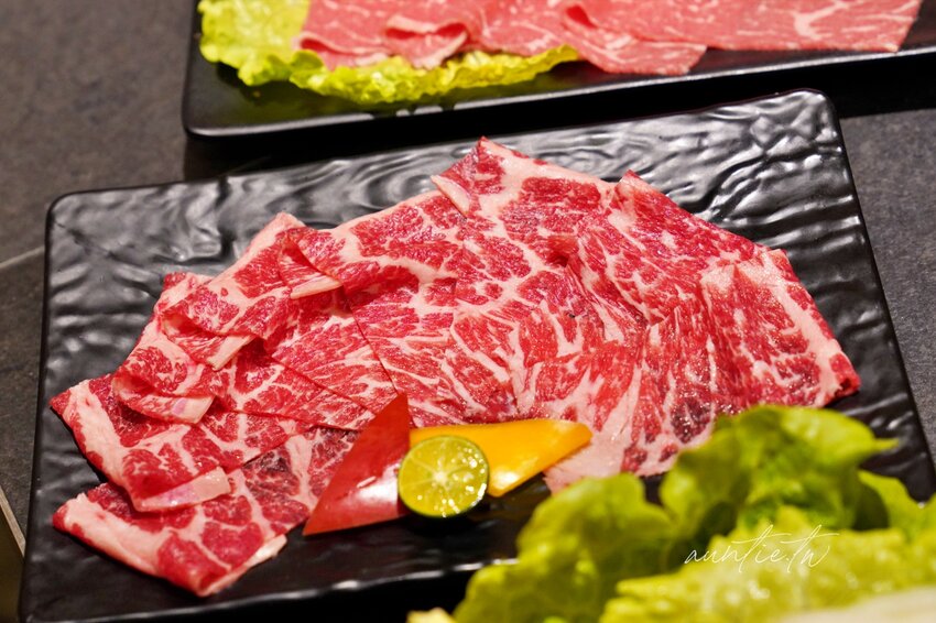 油花分布很均勻的澳洲M9和牛,很豪氣地切得大片,除了油脂豐富也比較有口感,吃多也不容易膩!