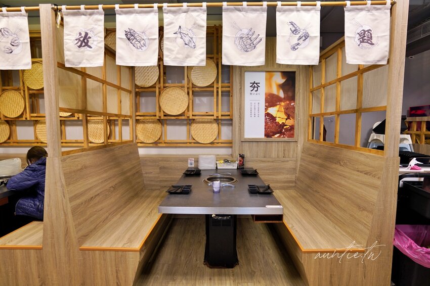 超夯の燒肉的裝潢設計帶著店日式風格,還有像是小包廂的座位區。
